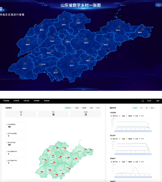面向山東省各縣、鄉鎮、村基層政府,通過地理信息、視頻監控、傳感設備等技術,創新打造涵蓋鄉村產業、鄉村治理、鄉村便民服務等多個領域的“鄉村數字化一張圖”。